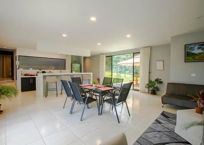 La Fortuna Vandfald er ca. 10 minutters kørsel væk. Gåtur til La Fortuna's centrum vil vare i 15 minutter. Costaricansk mad serveres på Down to Earth Coffee Shop og Restaurante Cafe Mediterraneo, som ligger 500 meter væk fra villaen. Du kan komme til Arenal Ecoglide Park om få minutter i bil.